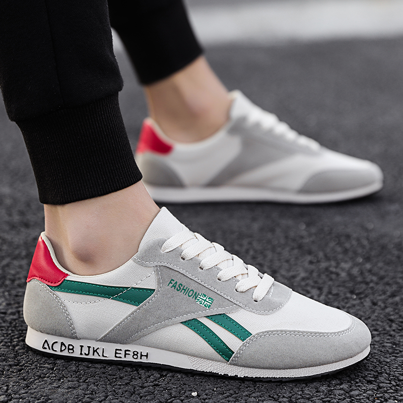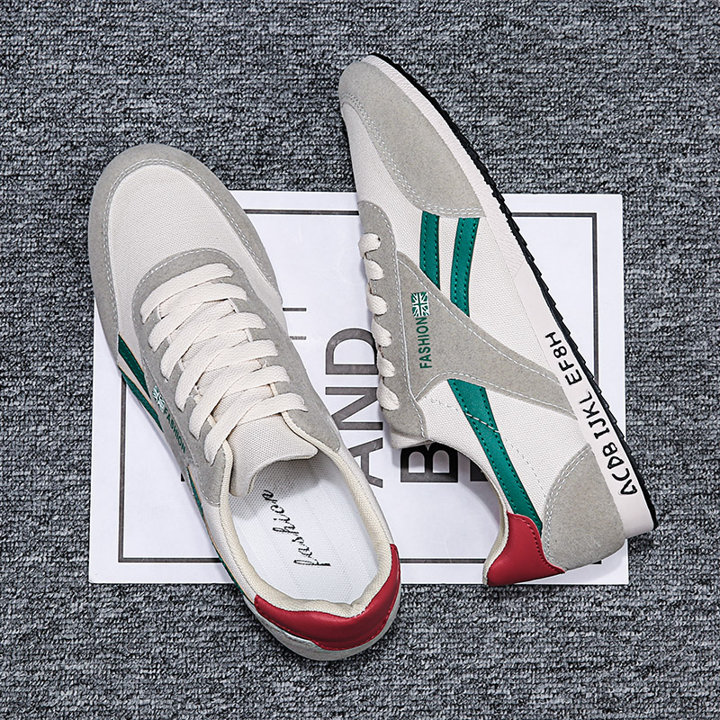 These retro-style casual sneakers feature a gray base accented with green stripes and a bold red heel, delivering a unique vintage-inspired look. Made with high-quality canvas and suede materials, the upper is soft, breathable, and durable, ensuring long-lasting comfort. The lightweight design, paired with a wear-resistant and anti-slip rubber sole, provides stability and grip, making them ideal for commuting, casual outings, or light sports.