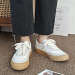 These classic off-white casual shoes combine minimalist design with a touch of vintage style, adding natural elegance to your daily outfits. The upper is crafted from high-quality canvas material, ensuring breathability, comfort, and long-lasting durability for a relaxed wearing experience. The soft off-white tone pairs perfectly with the light tan anti-slip rubber outsole, offering both style and enhanced grip for stability and wear resistance. The detailed stitching and smooth lines add a refined texture to the shoe design. The soft inner lining and cushioned insole provide exceptional comfort, making them ideal for long walks without any discomfort. Perfect for commuting, casual outings, and everyday wear, these shoes are a versatile staple for any wardrobe.