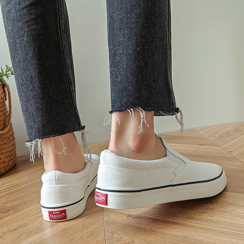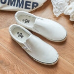 These slip-on white canvas shoes combine simplicity, comfort, and versatility. With their timeless design and easy-wear functionality, they are the perfect addition to your everyday essentials.