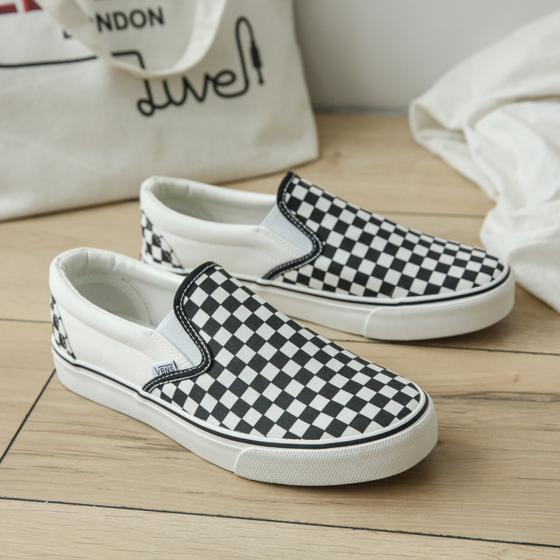 Niche Plaid Low-Top Canvas Shoes with round Toe New Student Street Shot Skateboard Casual Shoes-vt77