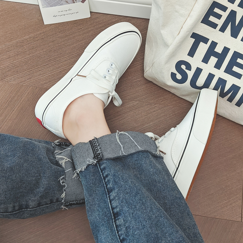 These classic white canvas shoes combine minimalist design with high-quality craftsmanship, making them the perfect go-to choice for everyday wear. The upper is crafted from premium canvas material, offering breathability and lightweight comfort for extended wear. The classic lace-up design is accented with delicate black trim, adding a touch of sophistication to the overall look. The outsole is made from durable, anti-slip rubber, providing excellent traction and stability for worry-free walking. The soft, comfortable lining conforms to your feet, ensuring a lightweight and relaxed wearing experience. Whether for casual outings, campus style, or daily commutes, these canvas shoes pair effortlessly with any outfit, delivering timeless style with ease.