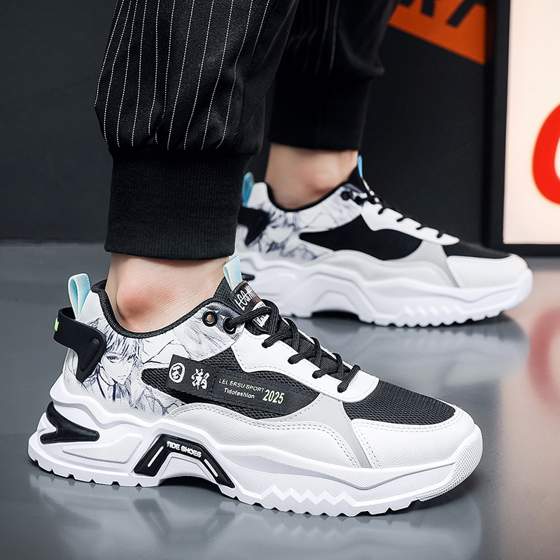 These trendy sports shoes combine style and functionality, designed for consumers who seek individuality and comfort. The upper is made of breathable mesh material, ensuring lightweight comfort, paired with bold graffiti patterns that showcase a unique streetwear style. The thick, anti-slip outsole offers excellent traction and stability, allowing you to move freely during daily wear or outdoor activities. The stylish color-blocking design and intricate detailing add a striking visual impact, making this a must-have fashion item for 2025. Whether for casual outings or fitness activities, these shoes meet your versatile needs and keep you effortlessly ahead of the fashion curve.