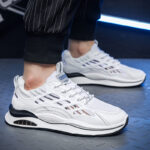 These sneakers combine stylish design with exceptional functionality, providing you with a comfortable wearing experience. Made with breathable mesh material, they keep your feet dry and comfortable. The thickened cushioning air sole offers excellent shock absorption, making them perfect for running, workouts, or daily wear. The outsole features anti-slip and wear-resistant rubber, enhancing grip and stability for safe walking. The clean, modern color scheme paired with a streamlined design makes these shoes versatile for any outfit, blending sport and casual style seamlessly.