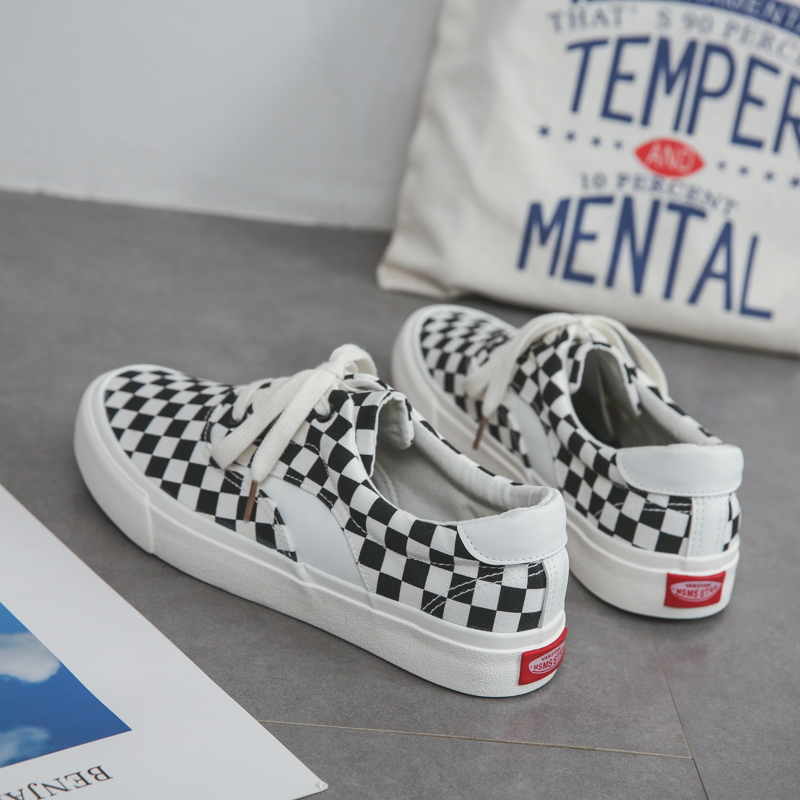 New Lattice Color Matching Design Custom Vulcanized Lace up Flat Casual Sneakers Canvas Men Women Shoes-vt18