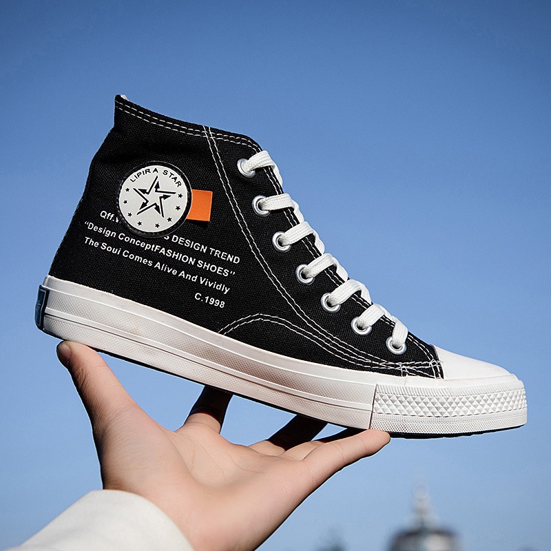 These classic high-top black canvas shoes blend style and functionality, adding a touch of cool to your everyday outfits. Crafted with premium canvas material, the upper is lightweight and breathable, ensuring long-lasting comfort. The white laces and toe cap contrast sharply with the black body, creating a minimalist yet distinctive look. The durable, non-slip rubber sole provides excellent traction, making it perfect for commuting, school, or casual outings. Whether paired with jeans, shorts, or skirts, these shoes effortlessly elevate your style, becoming a versatile staple in your wardrobe. Simple yet extraordinary, classic and timeless—an essential choice for your shoe collection!