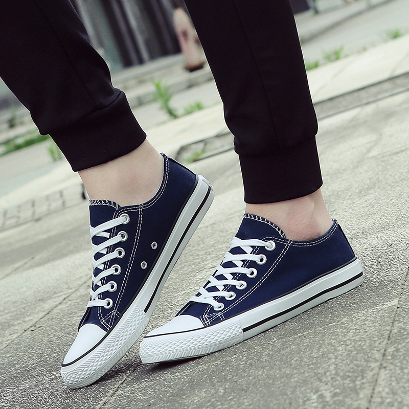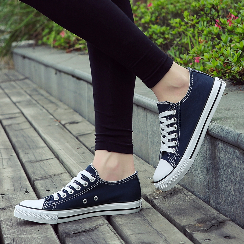 This classic blue low-top canvas shoe is crafted with premium canvas material, offering lightweight breathability for all-day comfort. The durable rubber sole provides excellent grip and wear resistance, making it suitable for various occasions. Its minimalist design, featuring white laces and a rubber toe cap, adds a touch of style and pairs effortlessly with jeans, shorts, or casual skirts. Combining aesthetics and practicality, this pair is the perfect choice for daily wear, travel, or casual activities, giving your steps confidence and energy!
