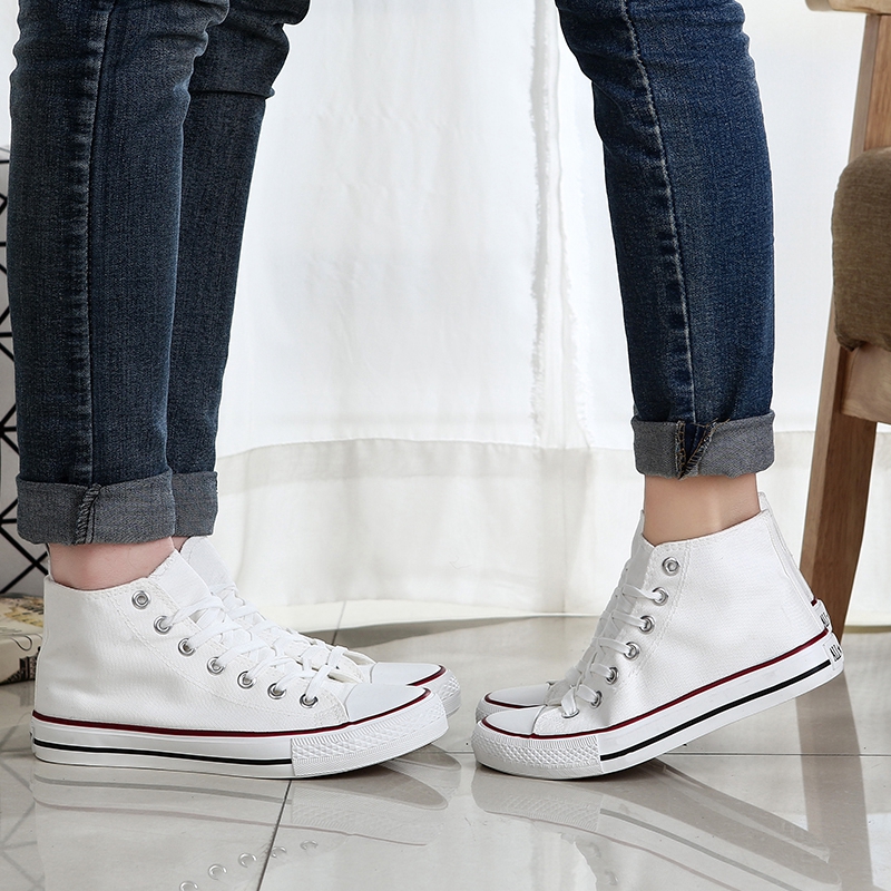 “These classic white high-top canvas sneakers are the ultimate blend of timeless style and everyday comfort. Featuring a durable canvas upper, breathable design, and a sturdy rubber sole, they are perfect for casual outings or completing your streetwear look. With their unisex appeal and versatile design, these sneakers are a wardrobe essential, offering both style and functionality for any season.”