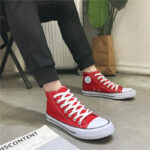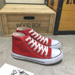 This classic red high-top canvas shoe features a simple and elegant design, making it a versatile choice for everyday wear. The upper is made of high-quality canvas material, offering breathability and durability for all-day comfort. The non-slip rubber sole enhances grip, ensuring walking safety. The timeless red-and-white color combination is stylish yet understated, suitable for various occasions, including campus life, casual outings, or daily commuting. The reinforced toe design improves durability, while the white laces add a touch of brightness to the overall look. This unisex shoe is an ideal choice for those seeking both comfort and style.