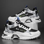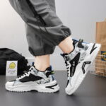 trendy sports sneaker blends street style with modern design, featuring high-quality leather and breathable mesh panels for durability and comfort. The unique black, white, and gray color-block design, complemented by bold trend-inspired logos and detailed accents, makes it stand out from the crowd. The thick, non-slip outsole provides excellent support and stability, perfect for both everyday wear and athletic activities. Whether you’re a fashion enthusiast or someone who prioritizes comfort, this sneaker is a must-have to help you effortlessly embrace urban style. Get yours now and step into a new chapter of fashion!