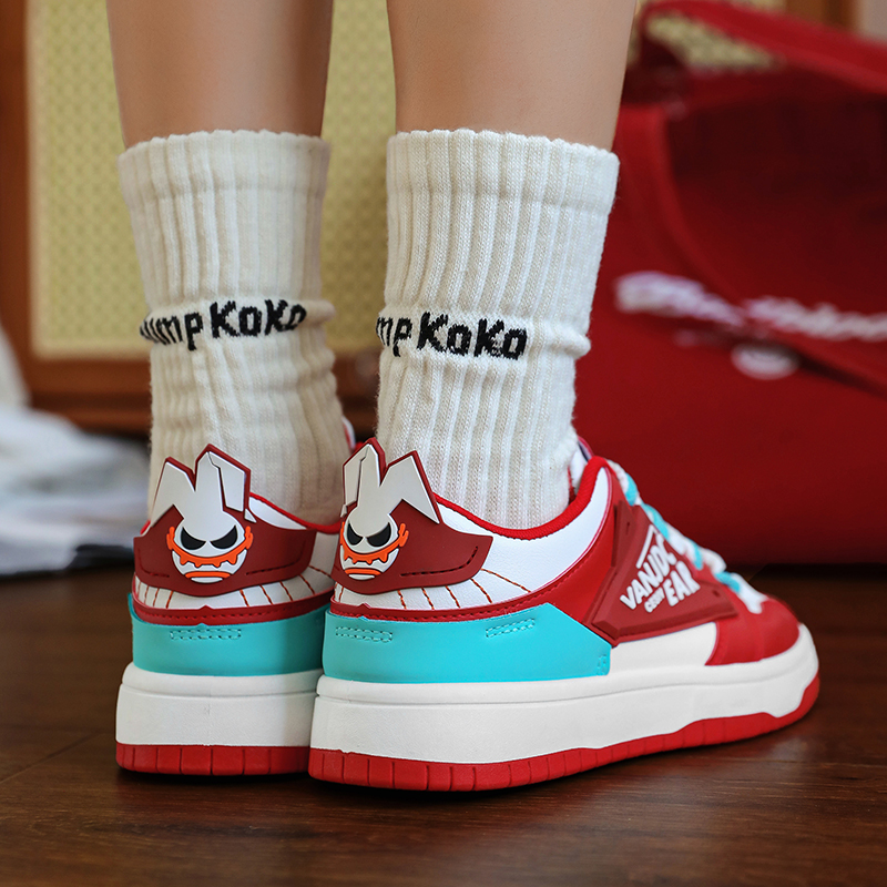 This trendy and stylish sneaker features a unique color-blocking design, with red and white as the main tones accented by striking blue details, creating a distinctive and eye-catching look. The upper is made of high-quality synthetic materials, offering both breathability and durability to ensure all-day comfort. The thickened sole provides excellent cushioning and enhanced support, making it perfect for everyday wear or light exercise. The side of the shoe features personalized logo designs and textured details, adding a touch of street fashion. Whether paired with casual or athletic wear, these sneakers will make you stand out in the crowd!