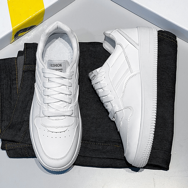 These all-white sneakers combine minimalist design with comfort to create a fashionable and versatile footwear choice. Crafted from high-quality leather material, the upper is smooth and delicate, lightweight, and breathable, providing all-day comfort. The thickened anti-slip rubber sole ensures stable grip, making them suitable for daily outings and sports needs. With a classic pure white color, they showcase a clean and modern style whether paired with casual wear, sports attire, or daily commute outfits. This is a must-have item for those pursuing both fashion and comfort!