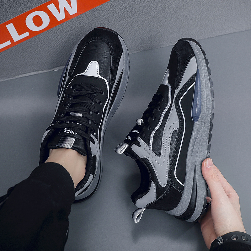 Breathable Casual Sport Mens Black Shoe Plus Size Show Height increasing Sneakers-dc2205