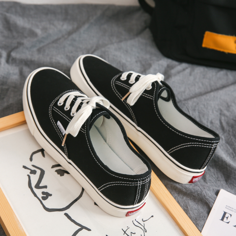 Fashion black and white color scheme walking style vulcanized shoes low top canvas trend shoes-vt59
