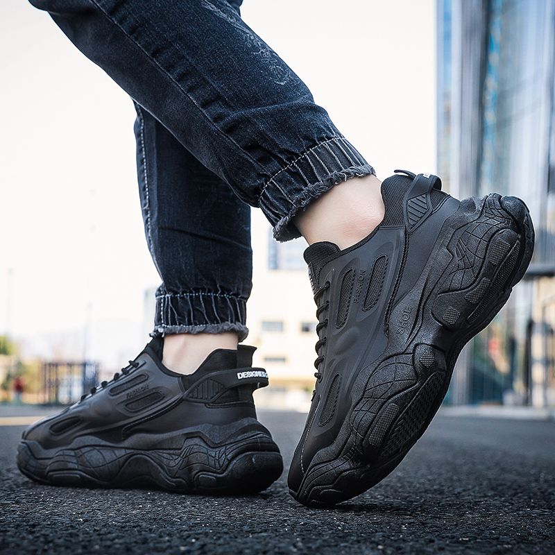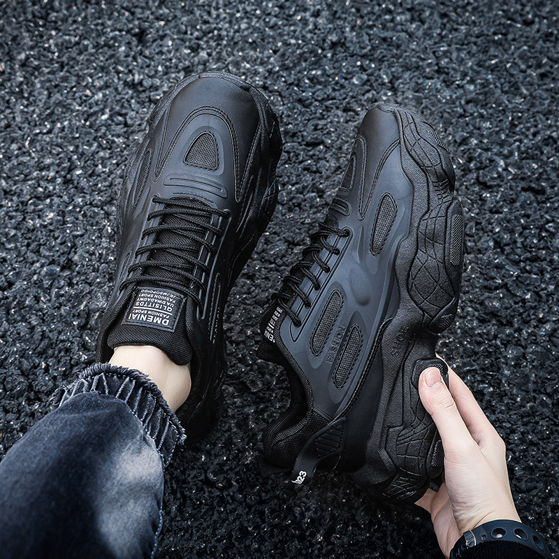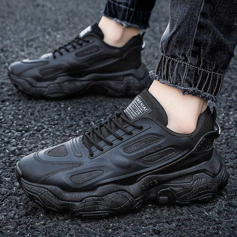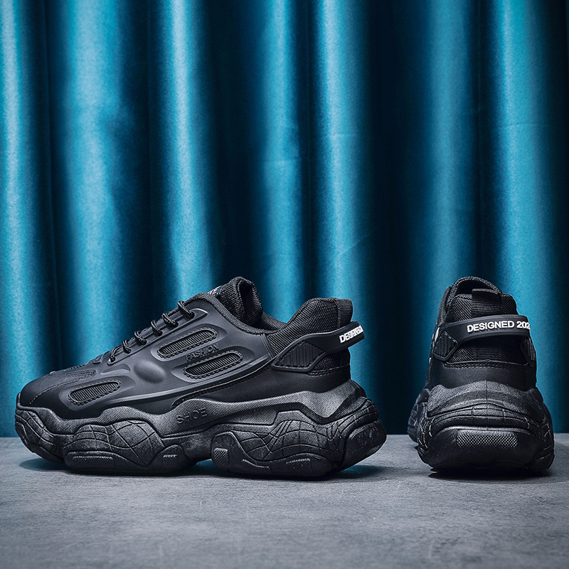 These all-black retro chunky sneakers combine fashion and comfort, designed for consumers who value both style and functionality. The upper is made from high-quality synthetic leather and breathable mesh, offering excellent durability and ventilation. The sleek all-black design exudes understated luxury, while the chunky sole adds height and provides exceptional cushioning, ensuring comfortable wear for daily commutes or athletic activities.