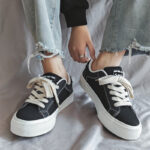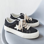 Classic Low-Top Canvas Shoes – Black and White Star Design