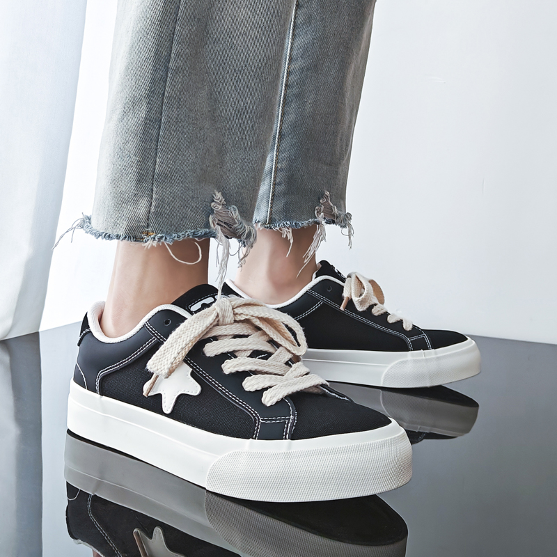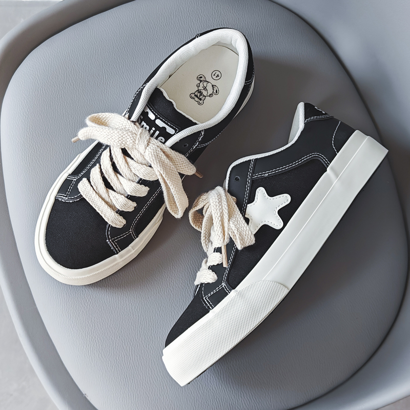 These black and white low-top canvas shoes feature a simple yet stylish design. The black upper, accented with a white star, perfectly blends timeless classics with trendy details. Made with high-quality canvas material, they are lightweight and breathable, paired with a soft insole and anti-slip rubber sole for comfort and safety. Perfect for daily wear, campus life, and street fashion.