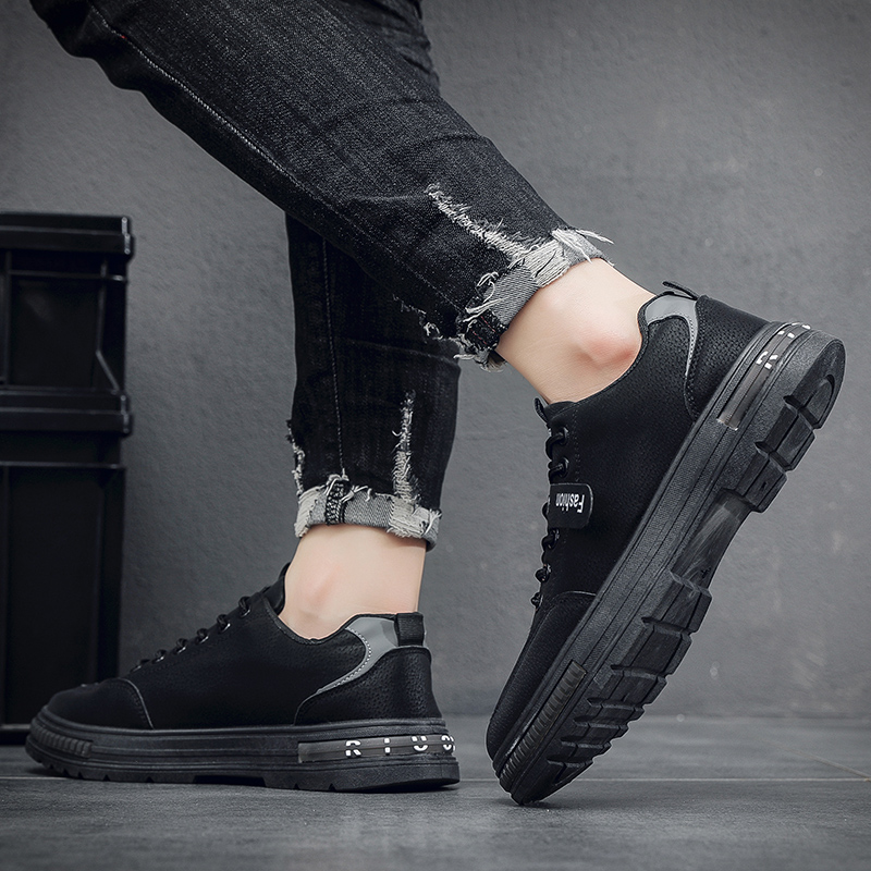 Step into style and comfort with these sleek, all-black sneakers, designed for the modern trendsetter. Crafted with high-quality materials, these shoes feature a durable anti-slip outsole for stability and confidence in every step. The breathable upper ensures long-lasting comfort, making them perfect for daily wear, work, or outdoor activities. Combining a minimalist design with subtle fashion elements like the “Fashion” side strap, these sneakers effortlessly complement casual, business-casual, and streetwear looks. Elevate your footwear game with these versatile and stylish sneakers – your ultimate go-to pair for comfort and durability!