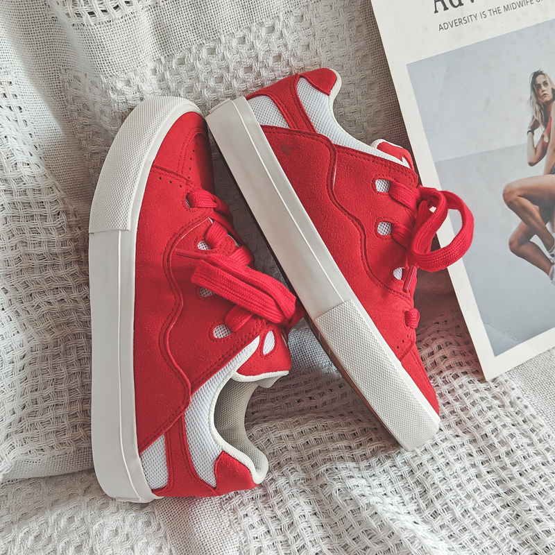 These red sporty canvas shoes perfectly blend energy and style, designed for those who value fashion and comfort. The upper combines premium suede and mesh materials, offering a soft touch and breathable comfort for all-day wear. The vibrant red color paired with wide laces adds a bold, standout look, ensuring you make a statement wherever you go. The anti-slip, wear-resistant rubber sole provides excellent traction and stability, making them suitable for casual outings, workouts, or streetwear styling. Whether paired with jeans, sportswear, or trendy street fashion, these canvas shoes are the perfect highlight for your outfit.