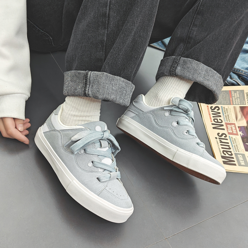 Niche Plaid Low-Top Canvas Shoes with round Toe New Student Street Shot Skateboard Casual Shoes-vt77