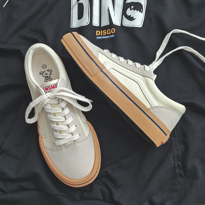 Retro color matching, fashionable and versatile: beige canvas and suede splicing design, with classic caramel color outsole, showing the retro literary atmosphere, suitable for multiple occasions.