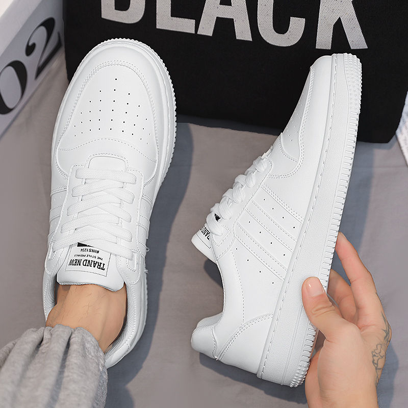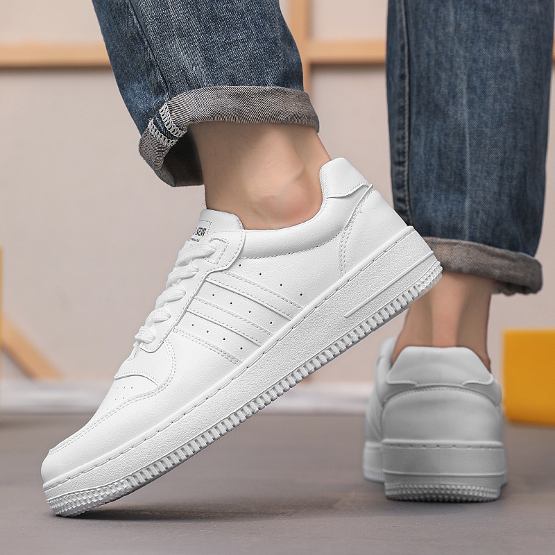 These minimalist and stylish all-white classic sneakers perfectly combine modern design with comfortable wear, making them an essential item for everyday outfits. The upper is crafted from premium PU leather, offering a delicate texture, durability, and easy maintenance. The breathable lining ensures your feet stay dry and comfortable for extended wear. The non-slip and wear-resistant rubber outsole provides excellent stability and grip, allowing you to walk confidently in any setting. With sleek lines and classic triple-stripe accents, these sneakers showcase a refined sense of style, suitable for sports, casual wear, or street fashion, effortlessly complementing any look.
