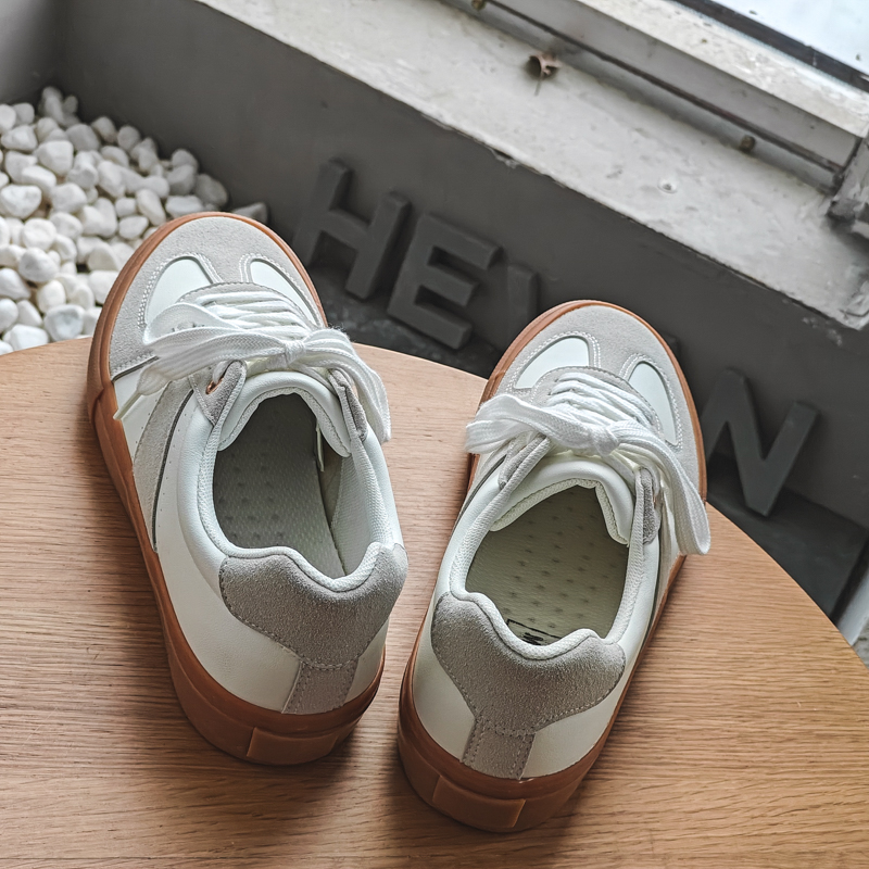 These white and light gray casual shoes draw inspiration from minimalist design and vintage style, offering the perfect combination of comfort and fashion. The upper features a blend of high-quality synthetic leather and suede materials, delivering a refined texture that’s durable and easy to clean. The classic brown rubber outsole adds a retro touch, showcasing understated elegance and timeless appeal. The soft, breathable inner lining conforms to your feet for all-day comfort, while the anti-slip, wear-resistant sole ensures stability and safety. Whether for daily commuting, casual outings, or trendy styling, these versatile shoes will keep you light on your feet and effortlessly stylish.