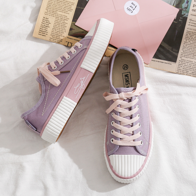 - Two-Tone Design, Unique Style: The classic violet canvas upper paired with a beige toe cap and Pink thick sole creates a bold, fashionable look for trendsetters.