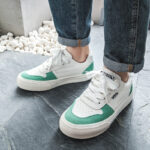These trendy casual sneakers feature a classic white base accented with refreshing mint green panels, creating a clean and vibrant look. Made with premium synthetic leather and suede materials, the upper is soft, breathable, and durable, ensuring long-lasting comfort for all-day wear. The sturdy rubber outsole provides excellent grip and wear resistance, making them perfect for any occasion. Whether for daily commutes, casual outings, or stylish streetwear, these sneakers are your perfect choice.